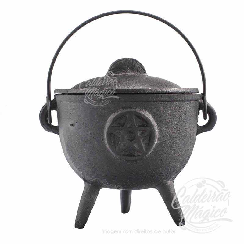 Caldeirão de ferro fundido miniatura com Pentagrama, para colocar os seus objetos pessoais, defumações, ou mesmo como peça decorativa.