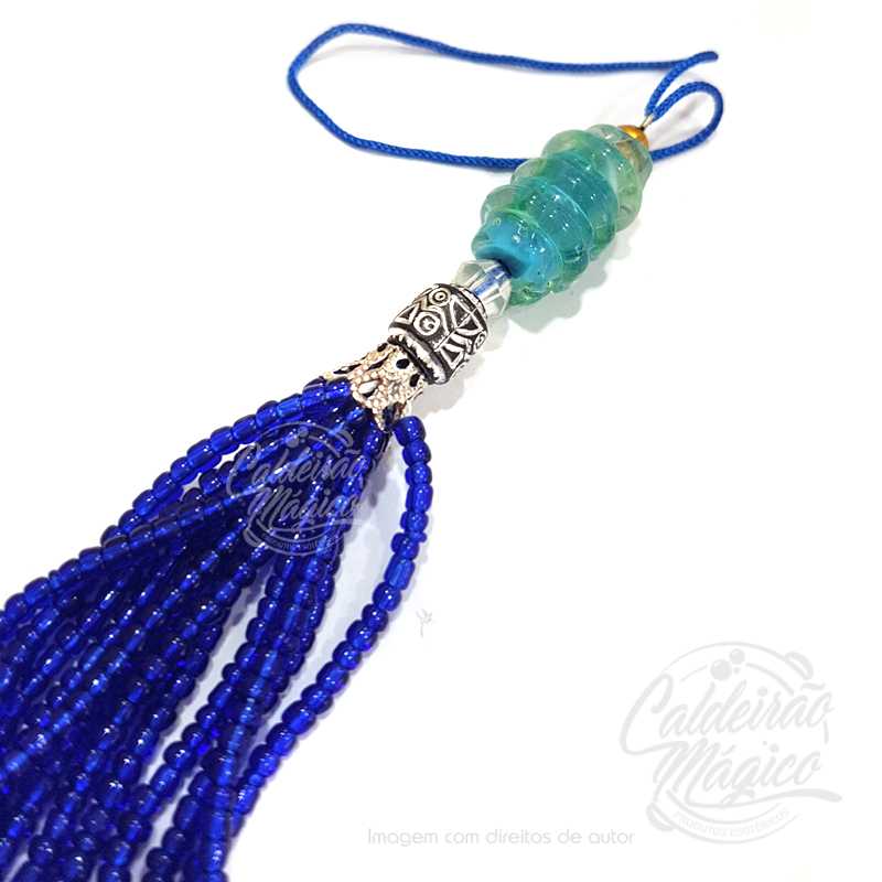 Pendente azul com missangas.